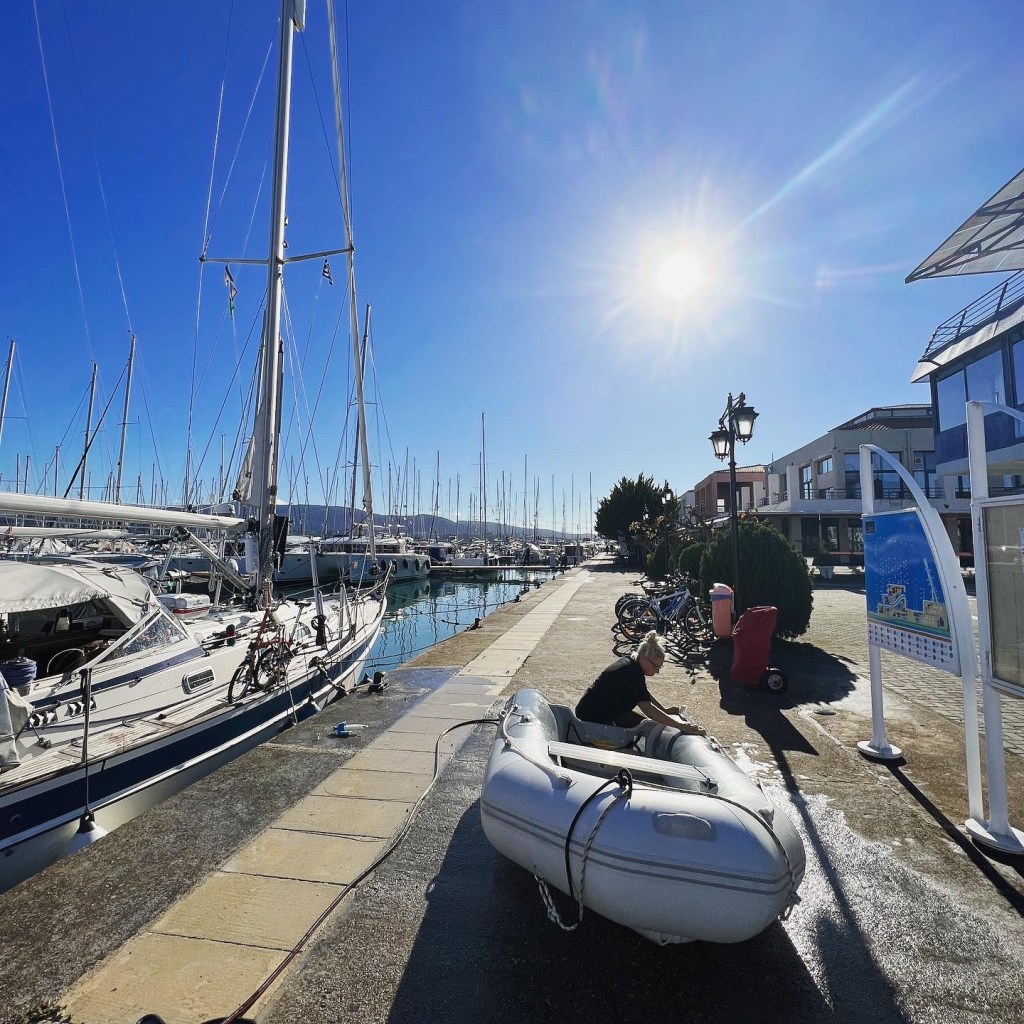 Många som seglar runt i medelhavet lägger sig stopp redan i oktober och ligger still till april, vilket inte lockade oss – vi är ju här för att segla och se oss omkring. Vinterseglar vi hemma så borde vi kunna göra det här tänkte vi. Trots detta bokade vi en plats i Lefkas Nov-Feb för att ha en hemmahamn under vintern – vilket vi vara glada för några veckor i november och december då regnet vräkte ner i princip varje dag. Vi ställde oss frågan om vad vi gjorde här medans vi tittade på andra seglares bilder från Kanarieöarna och Västindien. Men nu vet vi bättre. Nu är det försommar i luften. Kallt på natten, upp till 20 grader på dagen, 16 grader i vattnet och sol! Det är helt underbart!