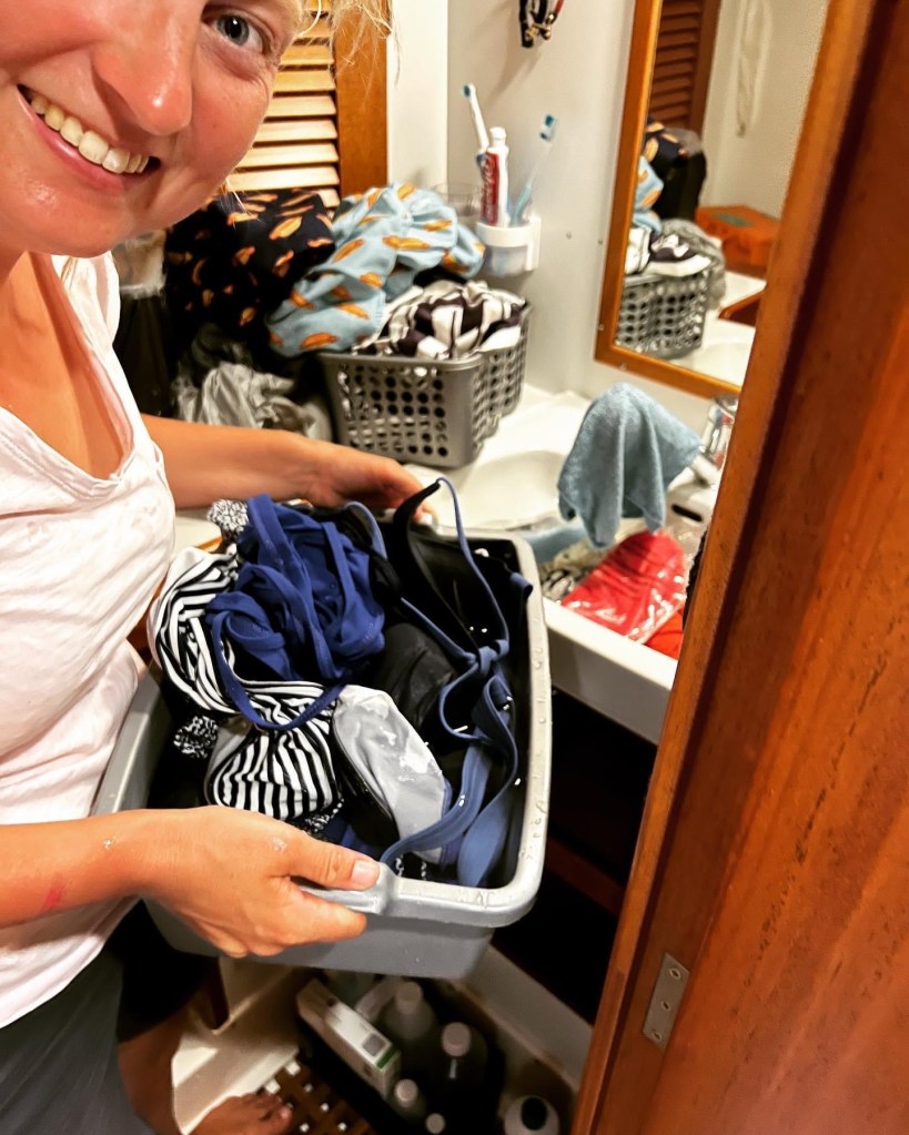 Och vi som snålar så på färskvattnet, där gick några hundra liter – snart dags att fylla igen 😜