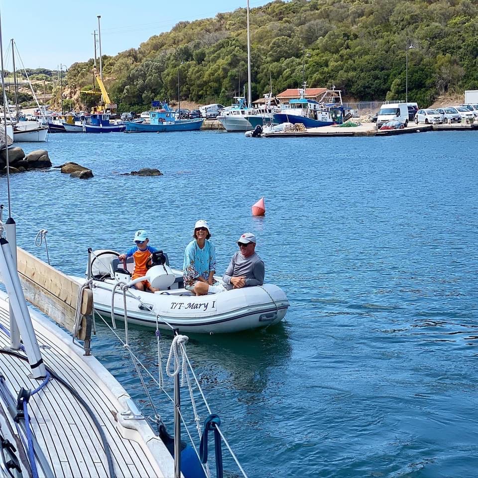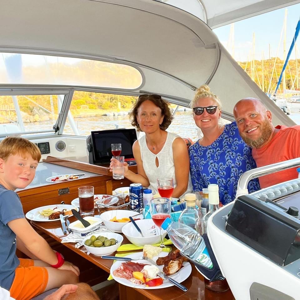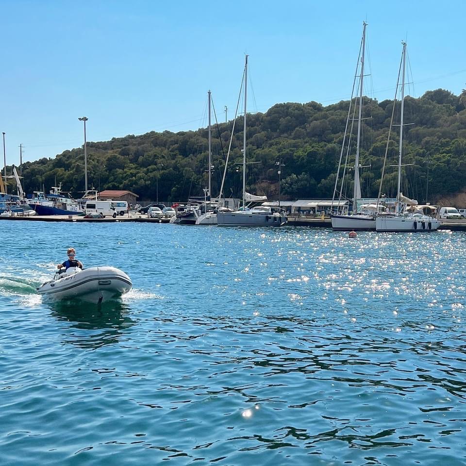 9-åriga Martin kommer med familjens dinge körande mot bryggan. Han älskar att köra gummibåt och har väntat hela dagen på att få agera taxi, trots att vi aldrig har träffats tidigare pratar han glatt med oss. Någon vecka tidigare hörde Martins föräldrar av sig för att berätta att de var i närheten, kanske kommer våra kurser korsas. Något vi såklart fick se till. Vi älskar möten med människor. Elin var barndomskompis med en av faderns döttrar men inte träffats på många många år. Och nu ses vi här på Sardinien av alla platser.