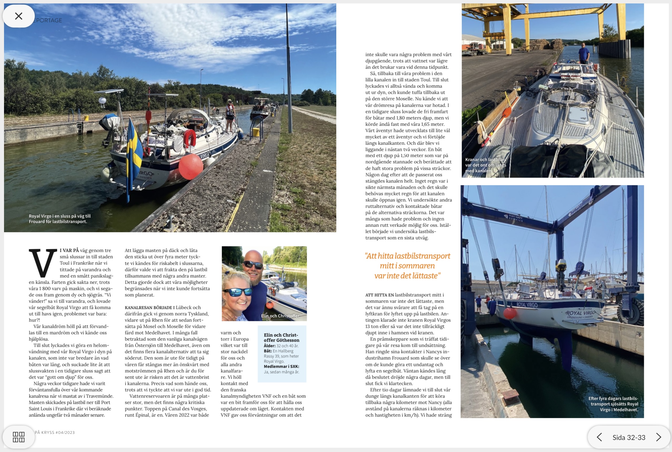 I På Kryss nummer 4 2023 har Elin skrivit en artikel om vad som hände oss när de franska kanalerna torkade ut på vår väg till medelhavet.