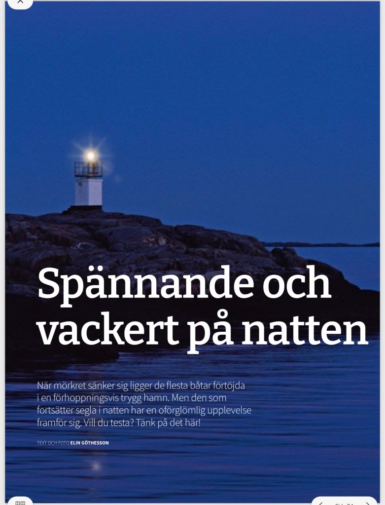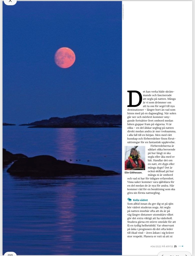 Elin har skrivit en artikel i På Kryss nr 6 2022 om vad man bör tänka på när man står inför sin första nattsegling.