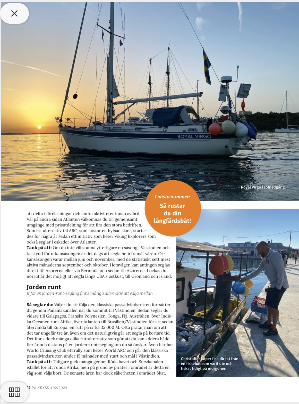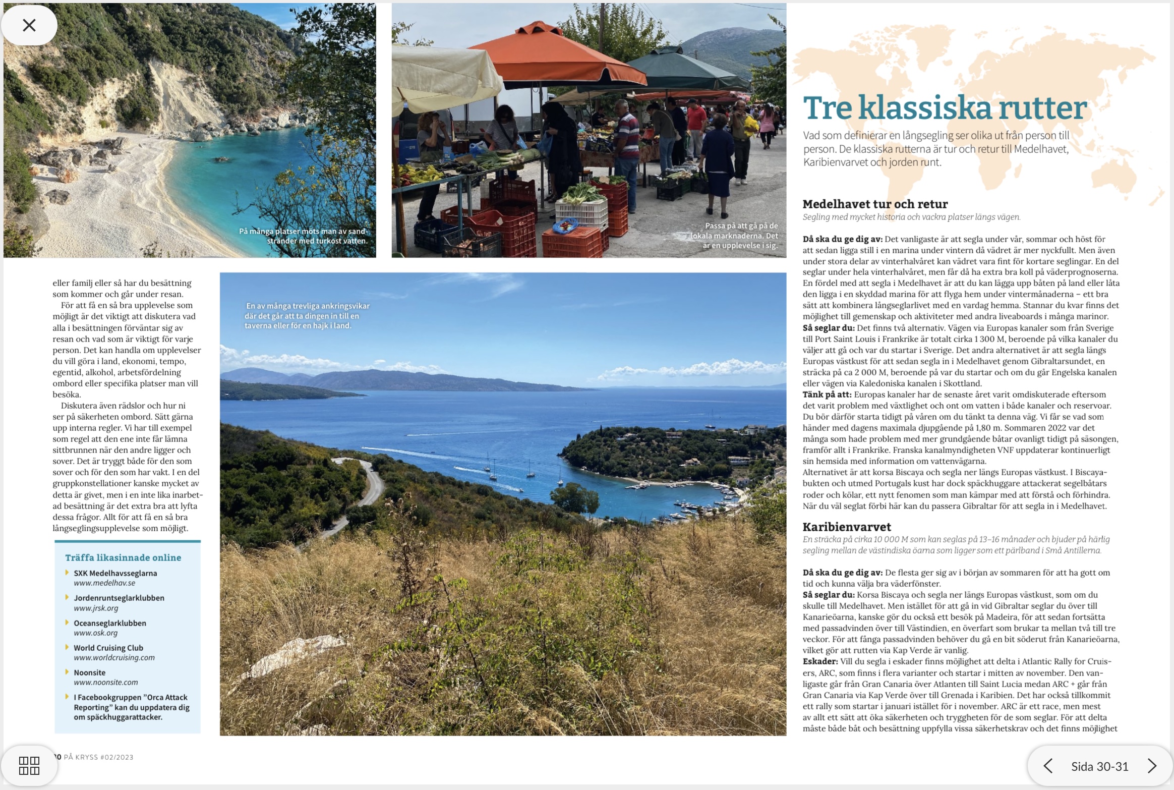 På Kryss – Segla långt och länge I På Kryss nummer 2 2023 har Elin skrivit en artikel om långsegling och vad man bör tänka på när man är i planeringsstadiet. Dela detta: Klicka för att dela på Facebook (Öppnas i ett nytt fönster) Facebook Klicka för att e-posta en länk till en vän (Öppnas i ett nytt fönster) E-post Klicka för att dela på WhatsApp (Öppnas i ett nytt fönster) WhatsApp Gilla Laddar in …