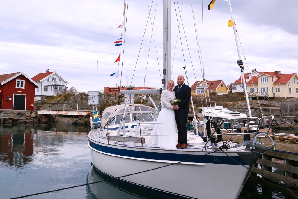 22/2-22 stod vi uppklädda inför vår närmsta familj för att säga ja till varandra. Bröllopet som var planerat sedan länge skulle äga rum i Grundsund med stor fest men pandemin tog ny fart och det kom nya begränsningar om att endast 20 personer fick samlas på en sammankomst – vi fick ställa in och tänka om. Käringön är en ö som ligger oss varmt om hjärtat och istället fick vi en fantastisk helg där med nära och kära. Och det viktigaste av allt – vi fick sagt ja till varandra. Royal Virgo låg såklart tryggt förtöjd utanför Handlarn.