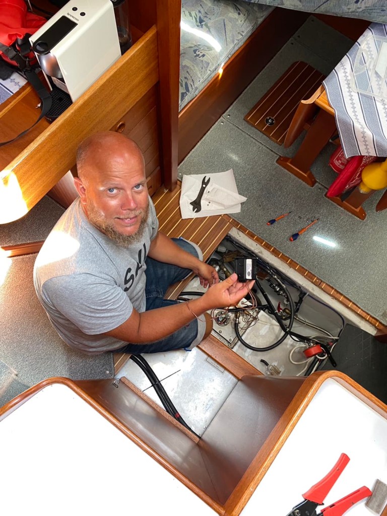 Solceller, radar och allt annat som var på däck var vi tvungna att plocka ner och stuva undan. Vi klarade gränsen på en totalhöjd på 4.30m. Det finns även en gräns på 4.50m men då är vägalternativen lite mer begränsade som vi förstått det.